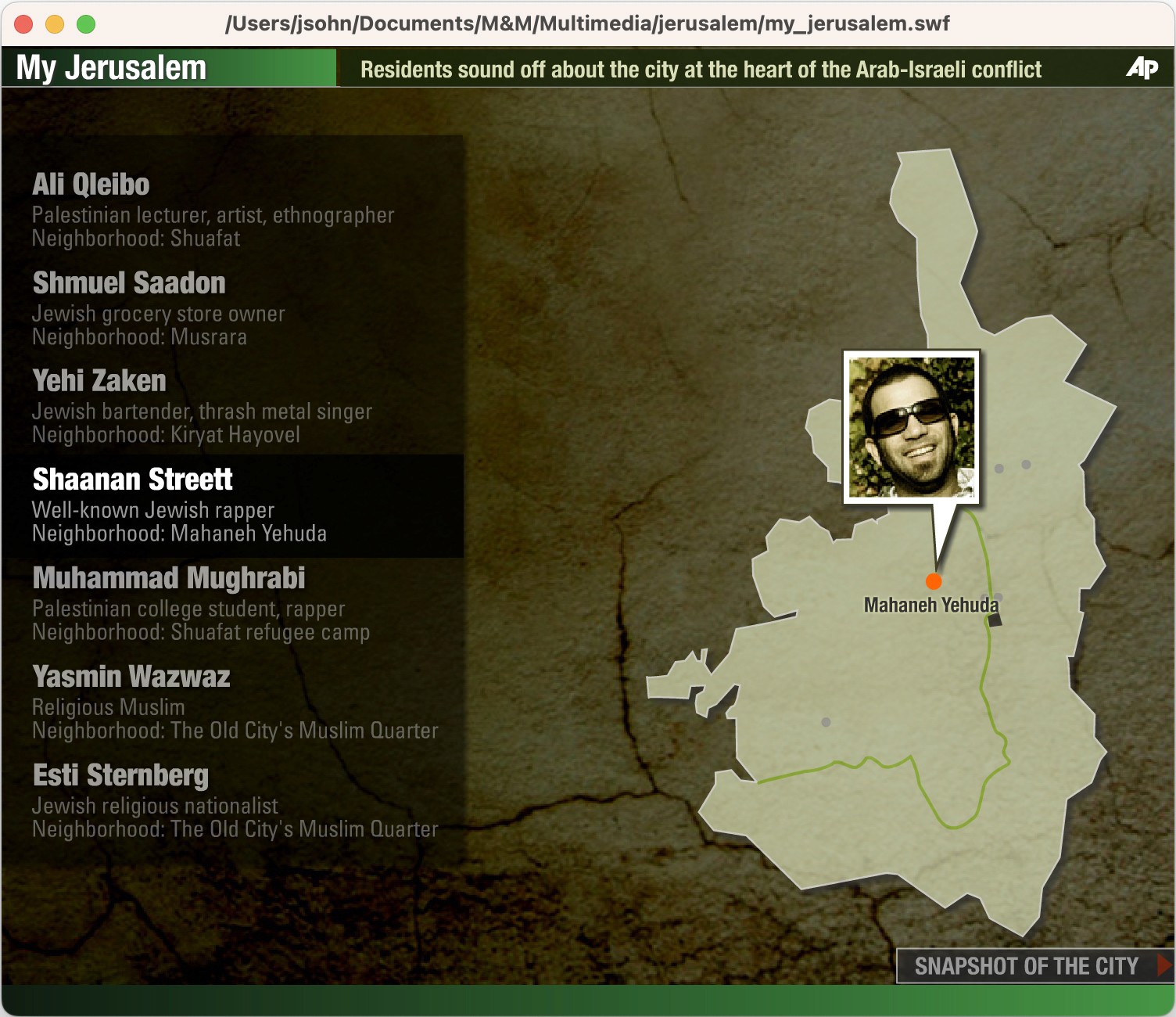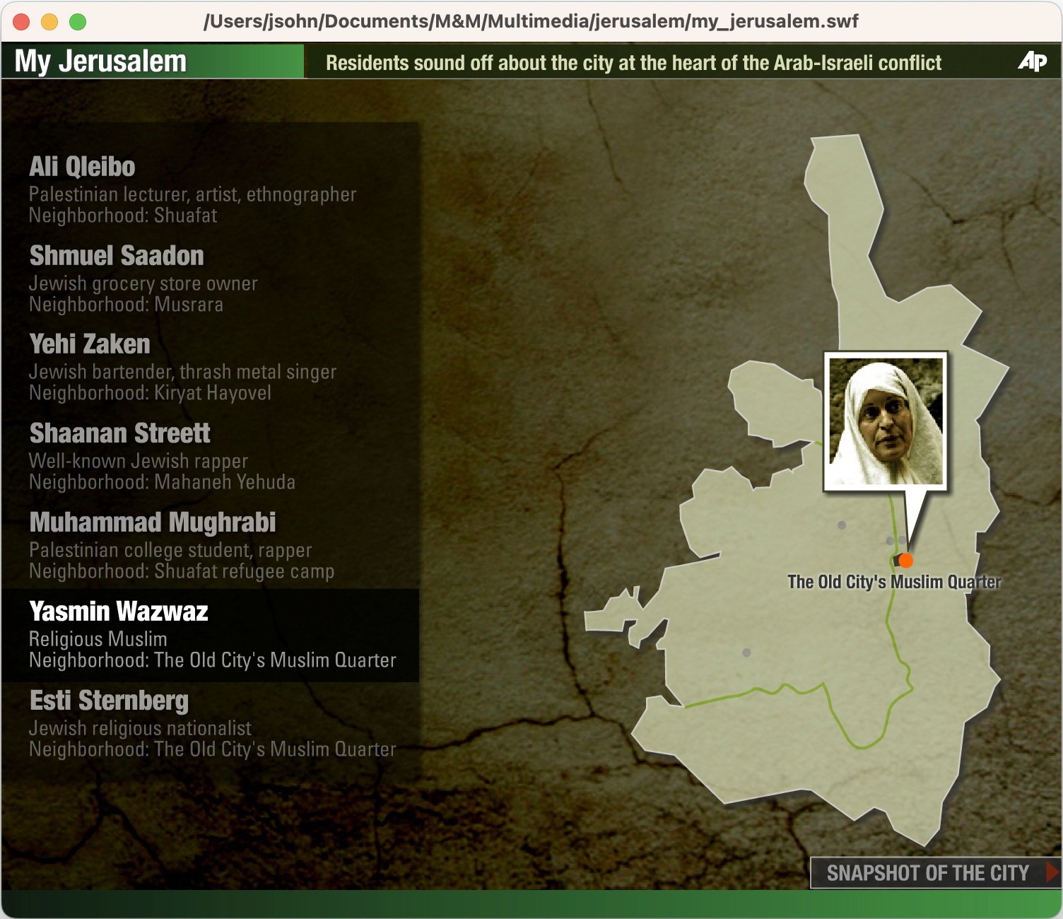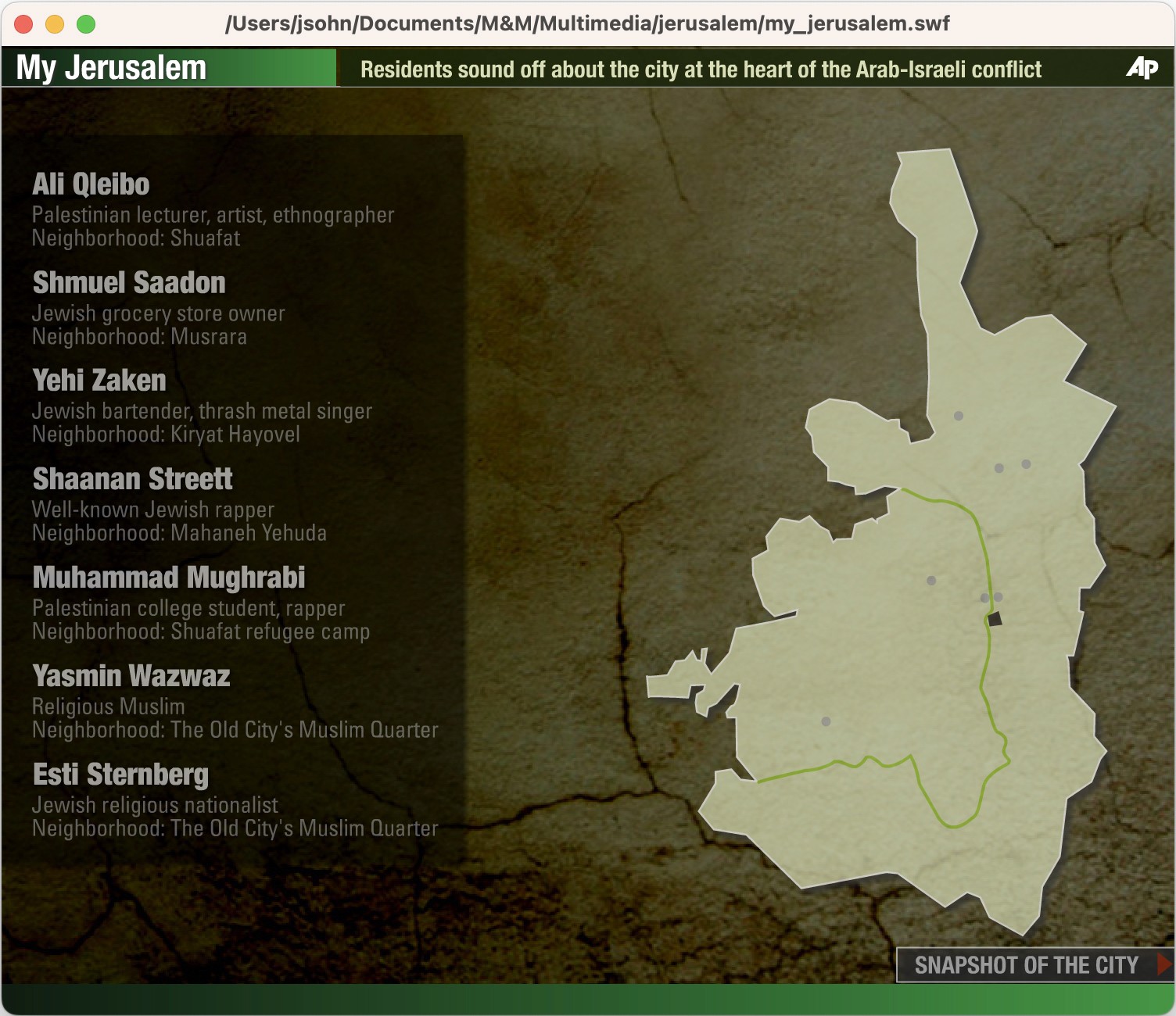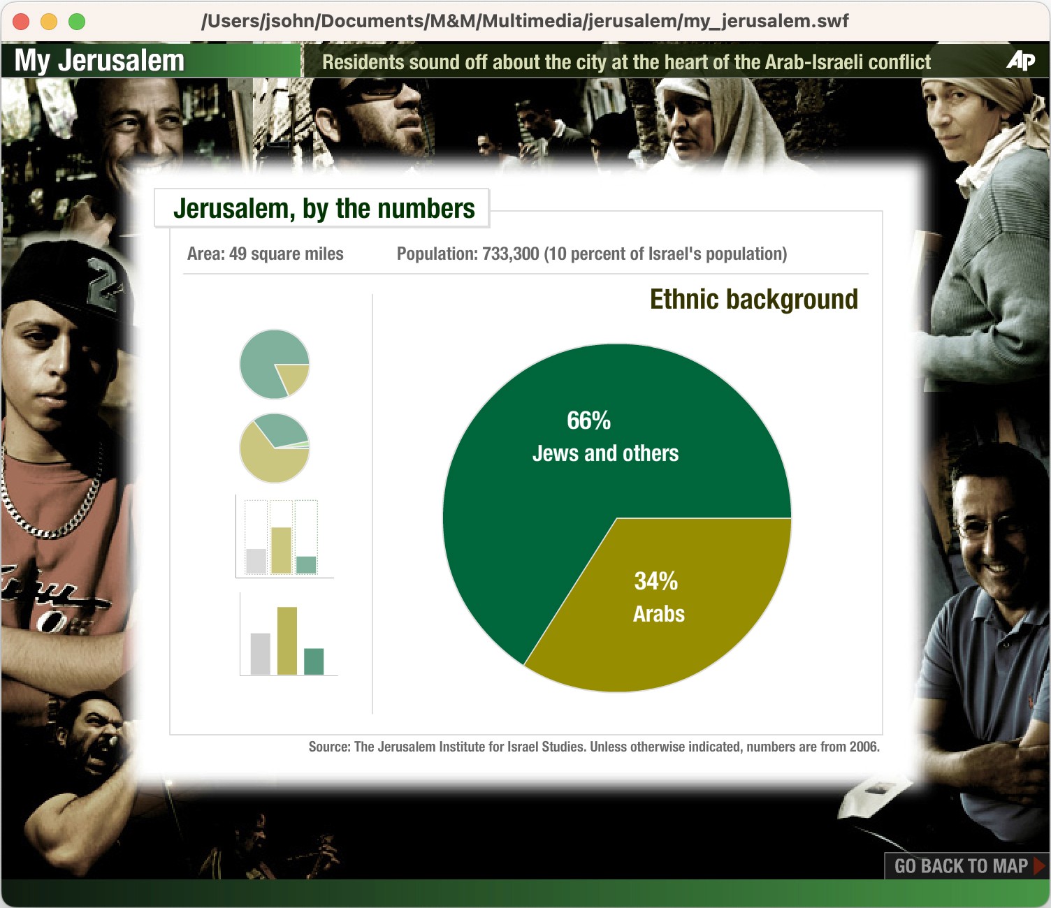 The Team: The AP bureau was in Tel Aviv, the interviewees were in Jerusalem, and I was in New York putting the interactive package together.