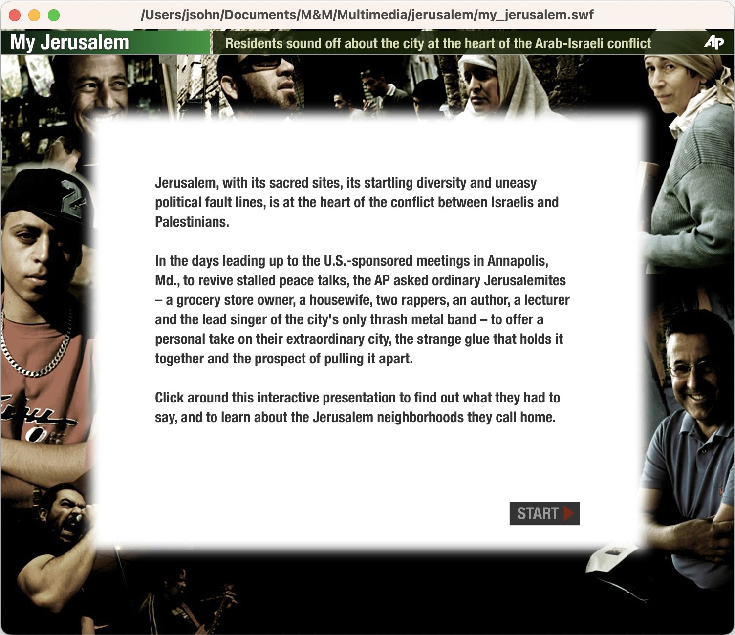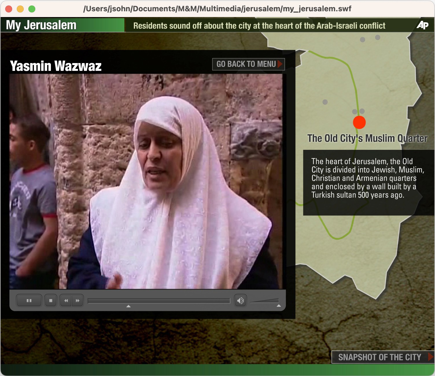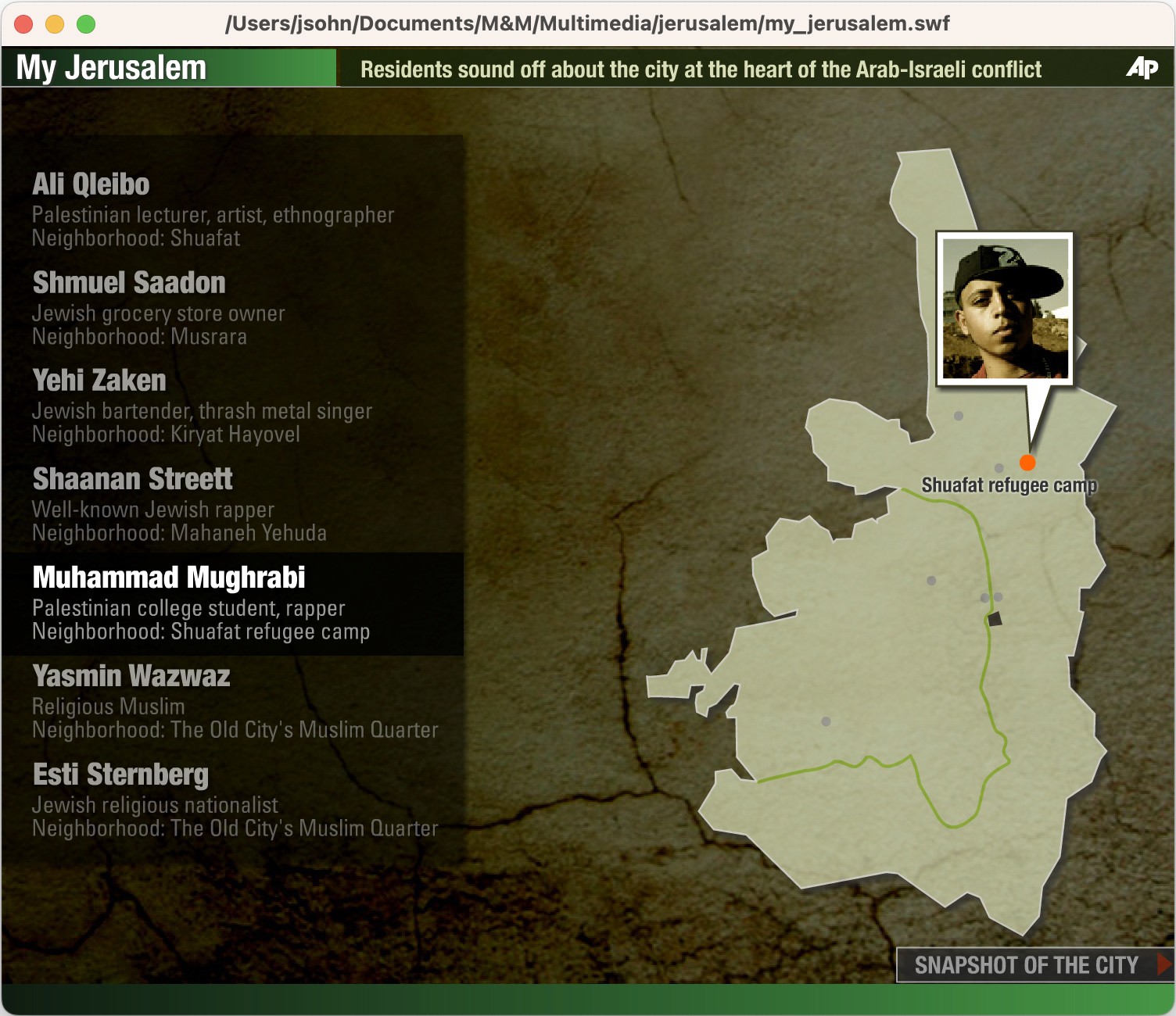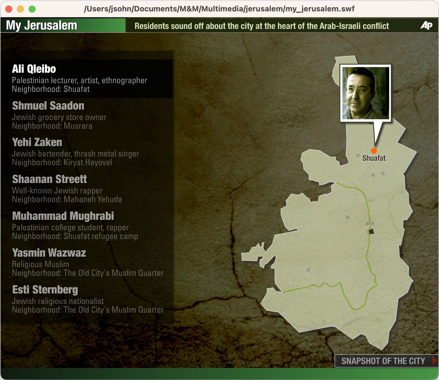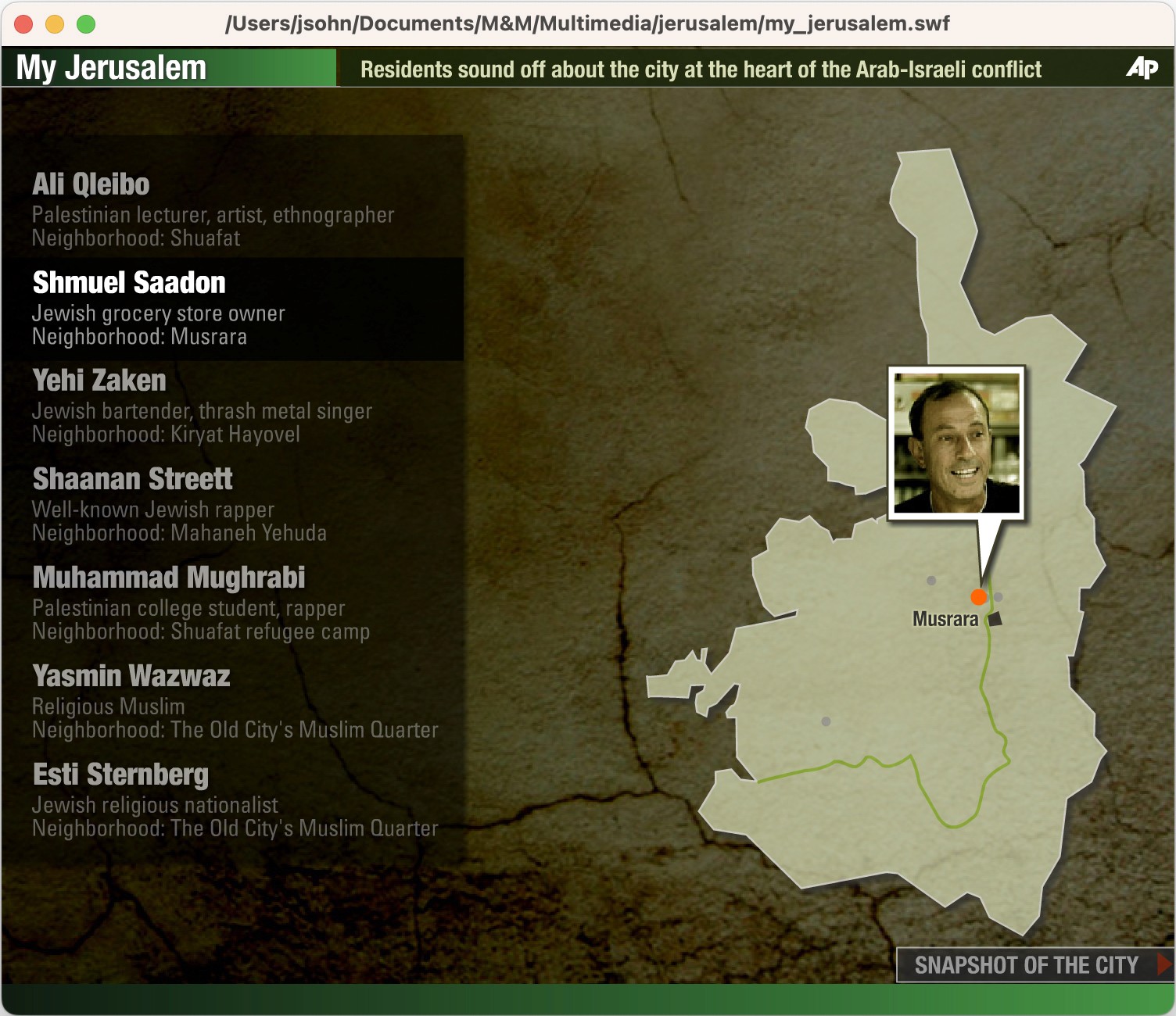 The Team: The AP bureau was in Tel Aviv, the interviewees were in Jerusalem, and I was in New York putting the interactive package together.