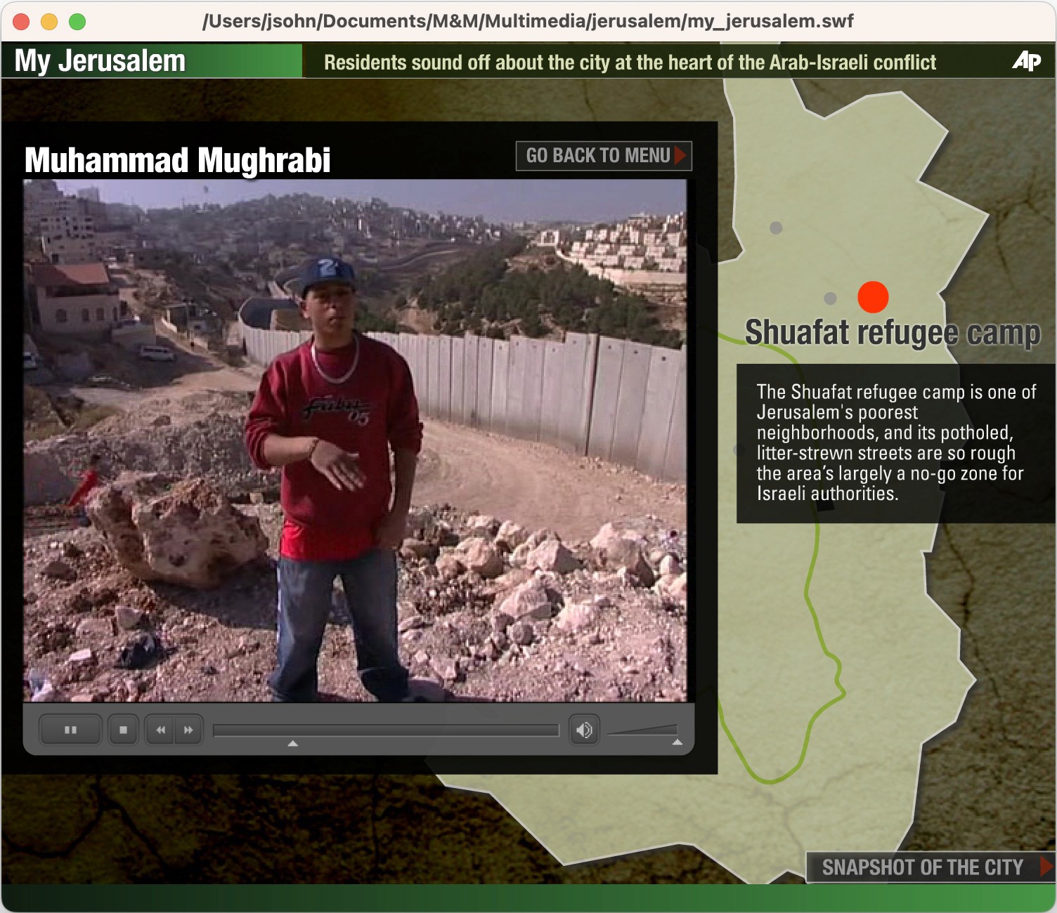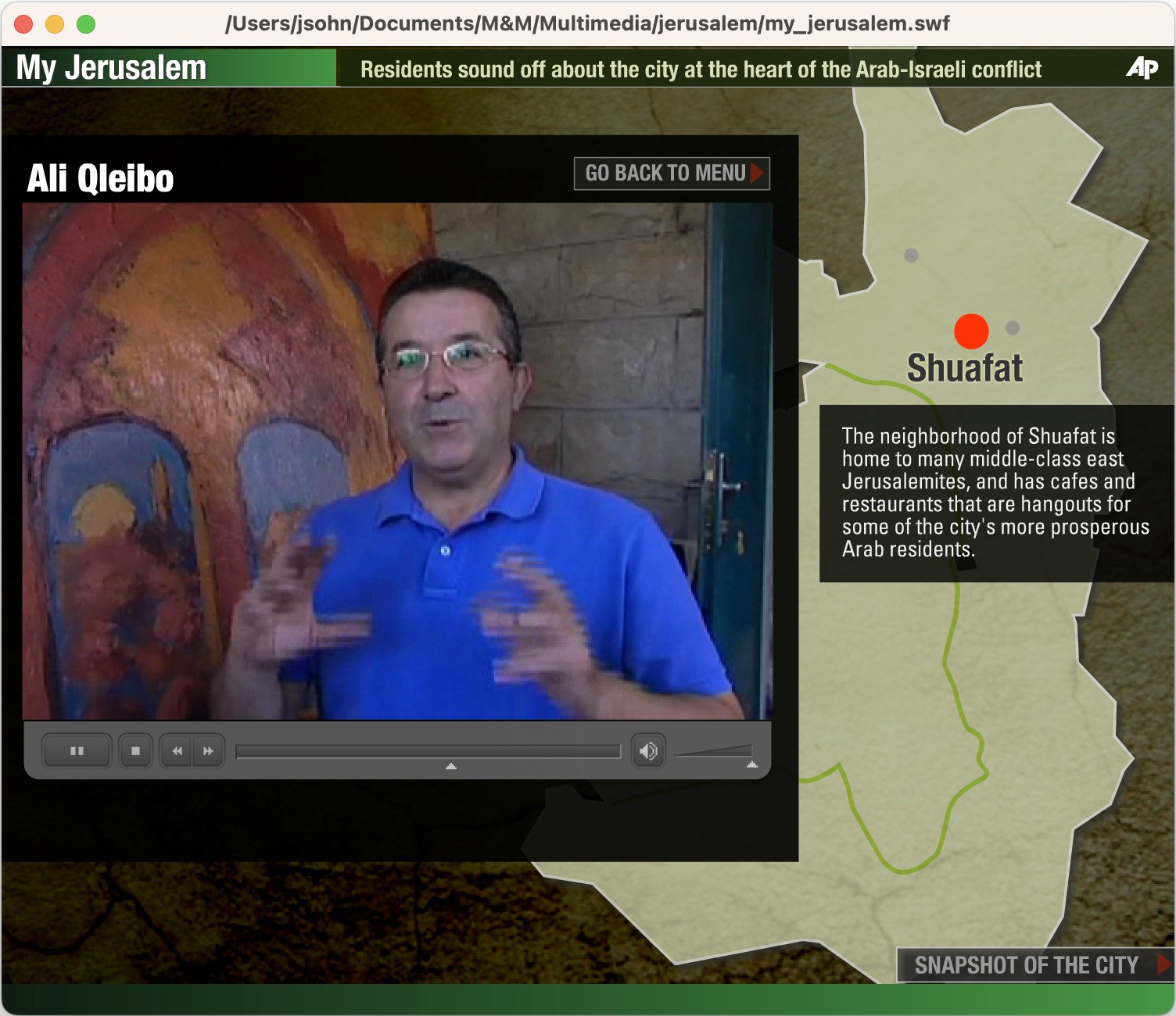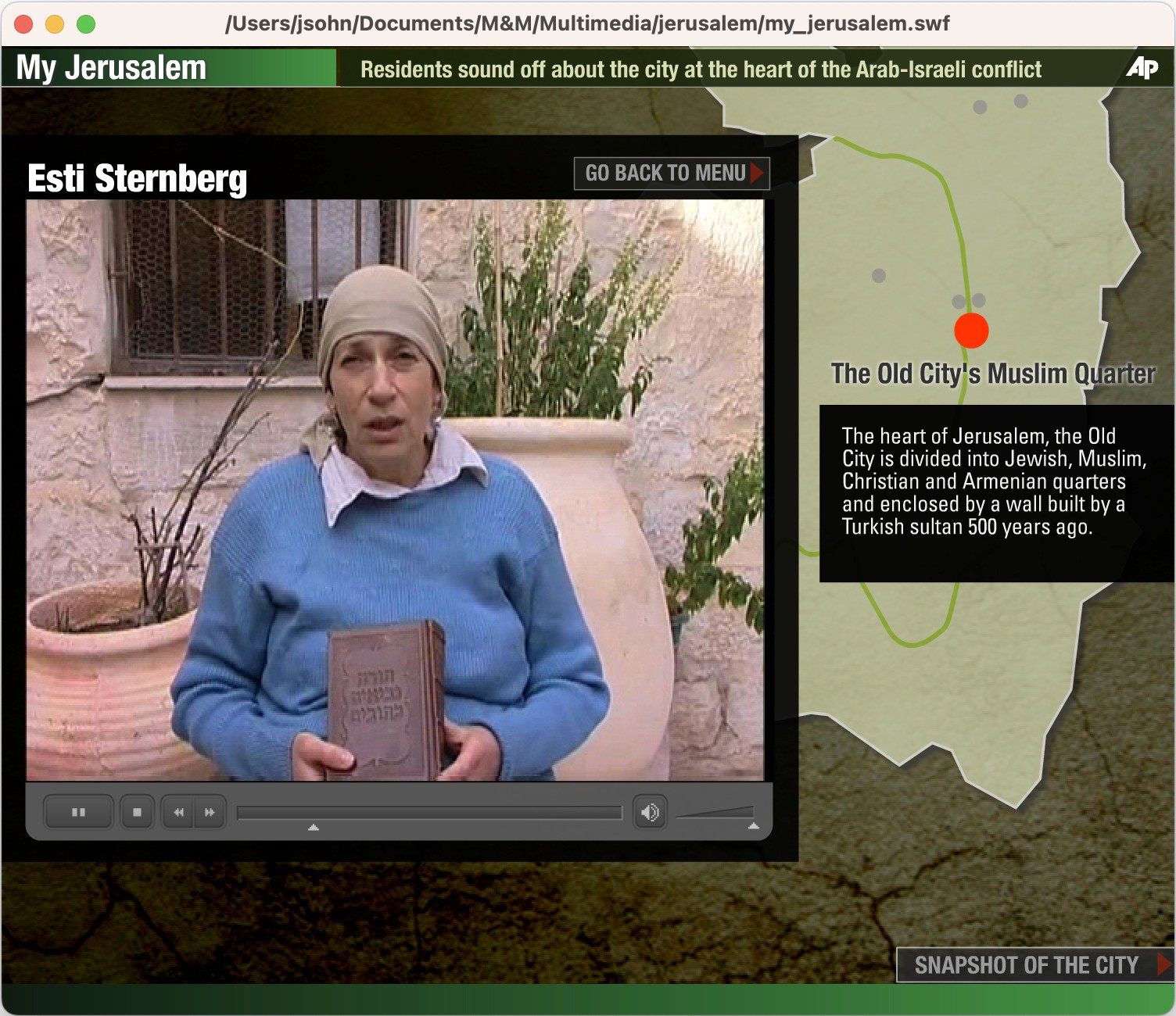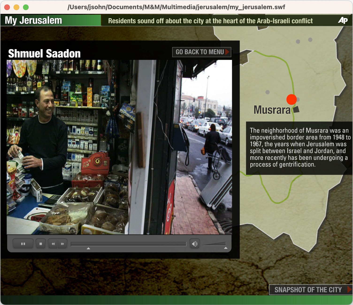 The Team: The AP bureau was in Tel Aviv, the interviewees were in Jerusalem, and I was in New York putting the interactive package together.